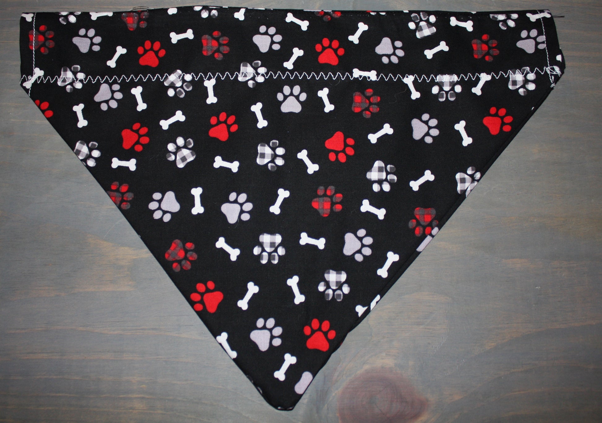 This stylish Bones and Gingham Paws Over the Collar Bandana is sure to add the perfect touch of fashion to any pup's wardrobe. The bandana displays paw prints and bones on a black background for an eye-catching design. Your pup will stand out from the pack!
