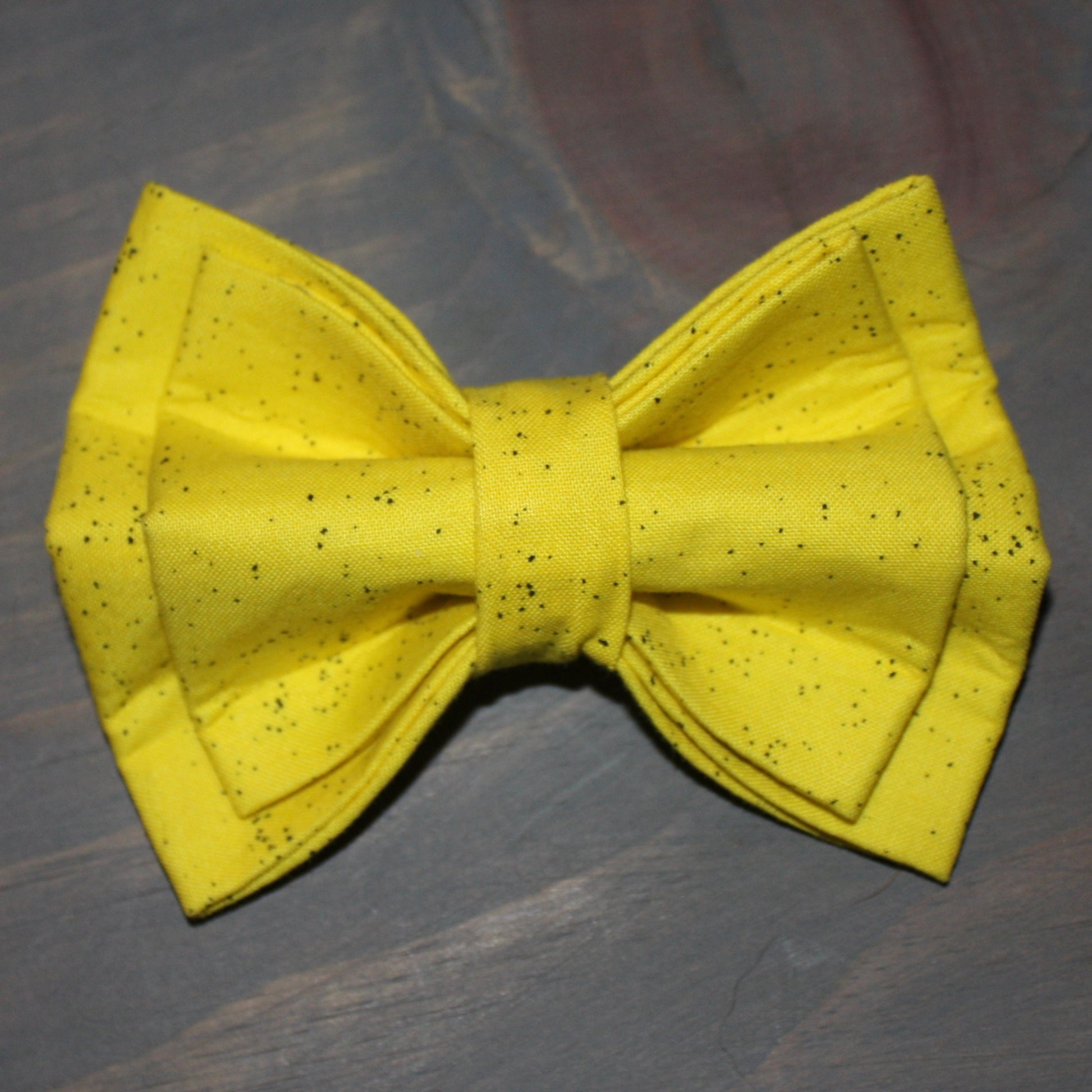 Put a little pizzazz into your pet's wardrobe with this Speckled Yellow Bow Tie! Featuring a yellow background with playful black speckles, this statement piece will give your pet's look a unique twist that's sure to attract some admiring glances!